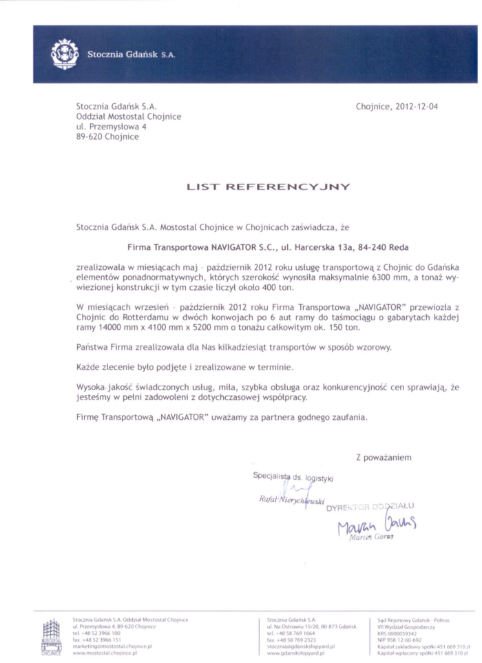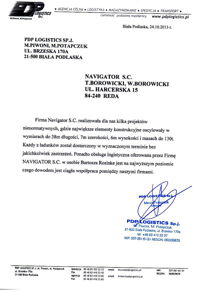 Navigator to firma, która działa na rynku transportów ponadnormatywnych od blisko 30 lat. Zdobyte doświadczenie pozwala nam świadczyć usługi na najwyższym poziomie.